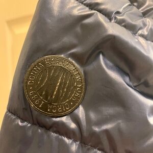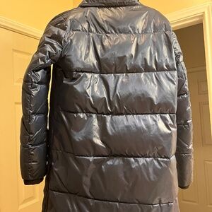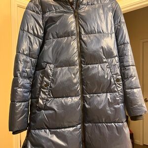 DKNY Women's Metallic Blue Longline Super Puffer Coat