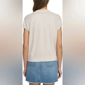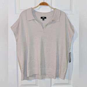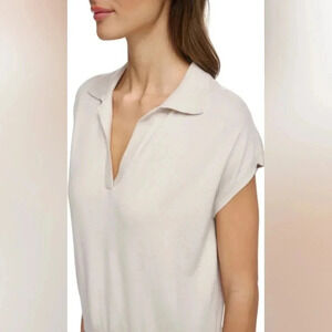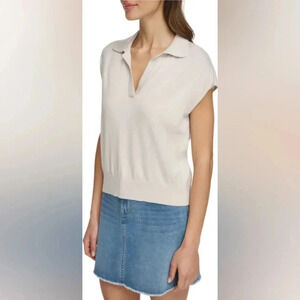 DKNY Women's Modern Fit Sleeveless Collared V-Neck Sweater Cream XXL NWT