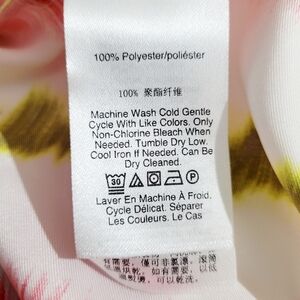 The DKNY Women's Multi Colors Sleeveless Top Blouse in size medium features a tie waist design that adds a stylish touch to the regular fit blouse. The colorful multicolor pattern adds a fun and vibrant touch to the top, making it a versatile piece for any woman's wardrobe. With short sleeves and a sleeveless design, this blouse is perfect for warm weather and can be dressed up or down for any occasion.