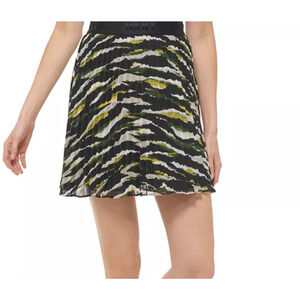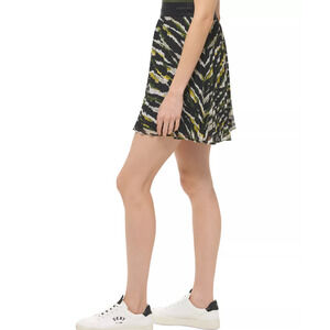 DKNY Women's Multi Green and Black Printed Pleated Skirt Large NWT