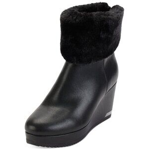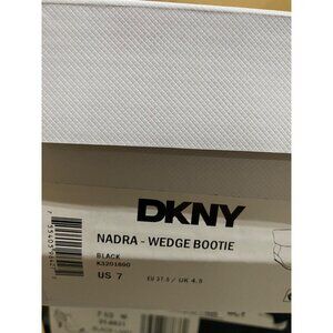 DKNY Womens Nadra Almond Toe Wedge Heel Booties Black Smooth Size 7M NIB