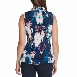 DKNY Womens Navy Pleated Floral Sleeveless Tie Top