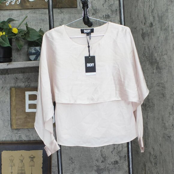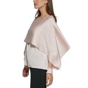 Full Title: DKNY Womens Petite Solid Crewneck Smocked-Cuff Cape Blouse Champagne Pink PM