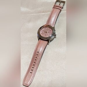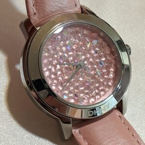DKNY Women's Pink Crystal Face Watch Leather Band Water-Resistant New Battery