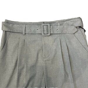 NWT women’s DKNY Pleated Belted Pants / Trousers in gray. Fabric belt and buttons and hem.