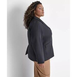 Sleek, sophisticated and always in style, this classic jacket silhouette by DKNY will always be boardroom-ready any day of the week, designed for the plus size figure.