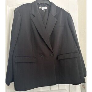 DKNY Women's Plus Size Double Breasted Notch-Collar Jacket Blazer Deep Black 24W