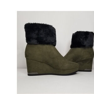 DKNY Women's Powell Wedge Booties Size 7.5 Green/ Black NWT
