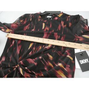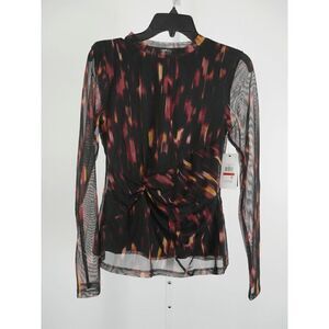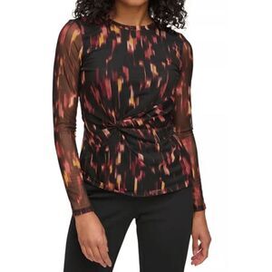 DKNY Women's Printed Mesh Side-Knot Top XS
