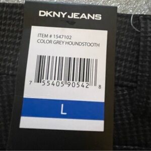 DKNY Women's Pull On Ponte Dress Ankle Pant Grey Houndstooth stretch Size L NEW