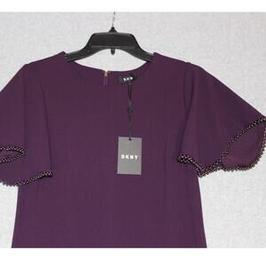 DKNY Women's Purple Bell Sleeve‎ with Bead trim Dress Size 8 NWT