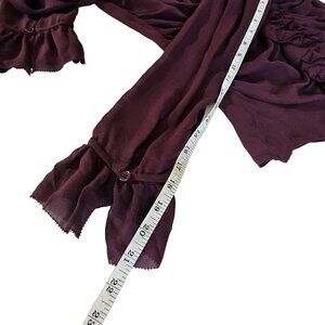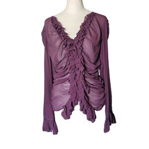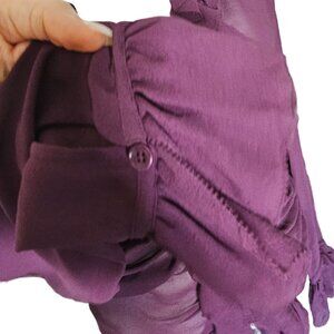 DKNY Women's Purple Silk Ruffle V Neck Pheasant Boho vibe Top Blouse size 10