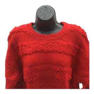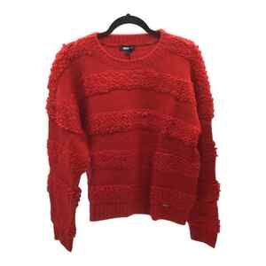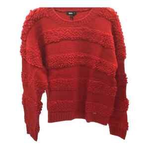 DKNY Women’s Red Textured Stripe Chunky Knit Sweater Size Large NWT