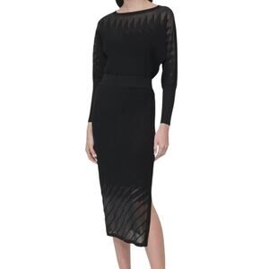 DKNY Women’s Ribbed Midi Skirt Black Size M