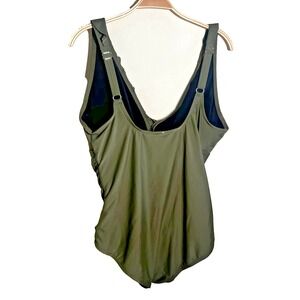 DKNY Women's Ruffle Plunge Underwire Tummy Control One-Piece Swimsuit Olive 18
