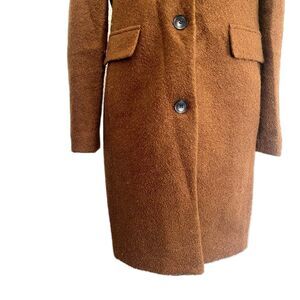 DKNY Women's Single Breasted Walker Coat Wool Blend Teddy Brown Size Small