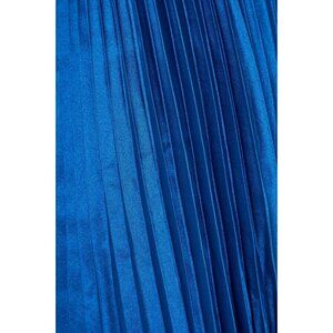 This DKNY Women's Size 10 Cobalt Blue Pleated Dress features a flattering A-Line silhouette with a tie waist belt for a cinched waist effect. The dress has a scoop neckline and short flutter sleeves, perfect for various occasions such as weddings, parties, formal events, workwear, and business meetings. Made of polyester, this knee-length dress is machine washable and showcases a solid blue color with pleated accents, making it a stylish and versatile option for any woman's wardrobe.