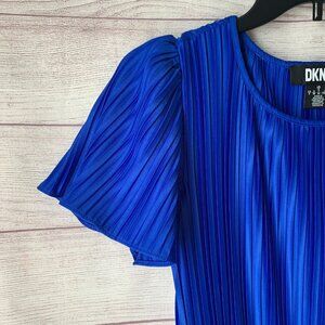 DKNY Womens Size 10 Cobalt Blue Pleated Dress Flutter Sleeve Tie Waist Belt NEW