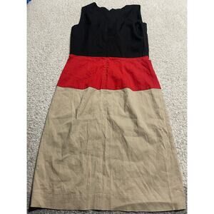DKNY Women's Size 2 Sleeveless Colorblock Shift Dress Black Red Tan