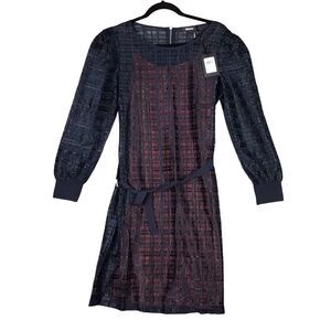 DKNY Women’s Size 4 Navy Lace Overlay Belted Party Cocktail Dress Long Sleeve