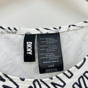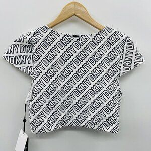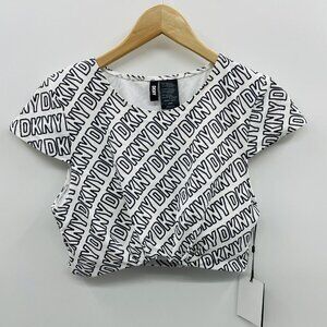 DKNY Womens Size Large Cropped Logo-Print Bikini Swimsuit Top in White $78 2001
