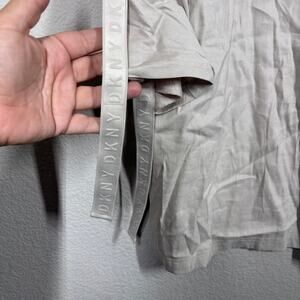New DKNY Womens Size Medium Tie Sleeves Top Tan Linen Rayon Blend Crew Neck Stretch