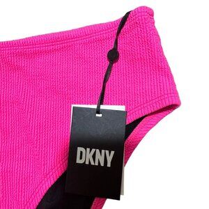 Elevate your swimwear game with this striking DKNY bikini swim bottom in hot pink. The high-waisted design is both flattering and comfortable, while the textured material adds a unique touch. Made from a blend of nylon and spandex, this bottom offers 4-way stretch for maximum flexibility.