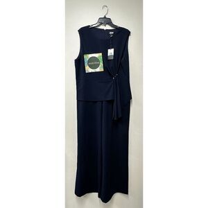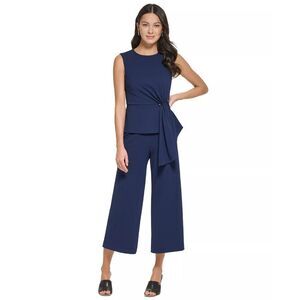 DKNY Women's Sleeveless Side-Draped Wide-Leg Jumpsuit - Navy 16