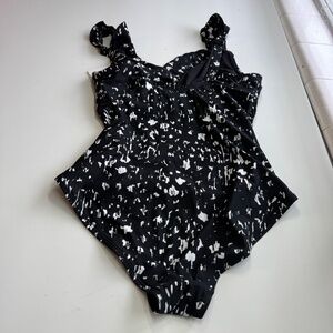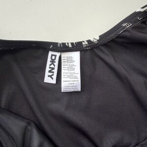 DKNY Womens Spotted Ruffle V Neck One Piece Bathing Swimsuit Large