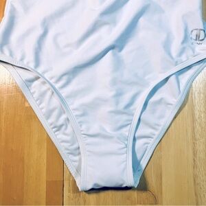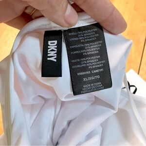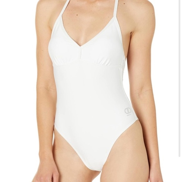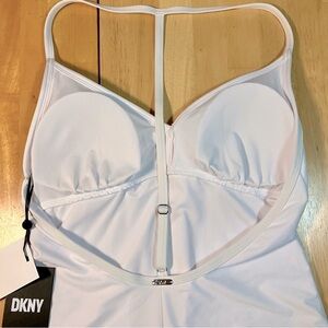 DKNY Women's Standard Elastic Strap White One Piece Swimsuit XL Beach, cute fun