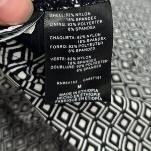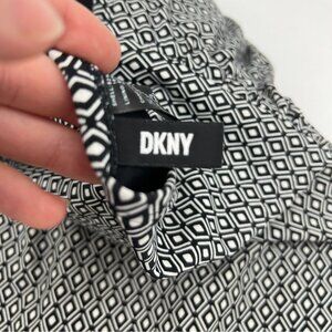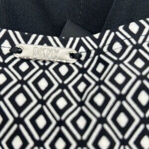 This black and white geometric swimsuit from DKNY is both stylish and functional, designed with a flattering one-piece cut. The nylon-spandex blend ensures a comfortable fit, while the polyester lining adds durability. Its timeless pattern and soft fabric make it a versatile choice for beach outings or poolside relaxation.