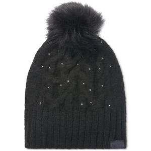 DKNY Women's Studded Cable-Knit Pom Pom Hat, Black, One Size
