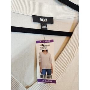 DKNY Womens Sweater V-Neck 3/4 Sleeves Pullover Beige Size XXL New With Tags