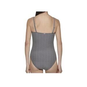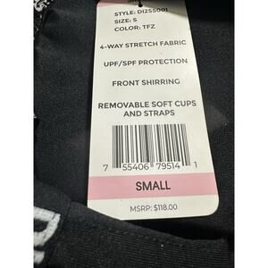 DKNY Women’s Swimsuit Bandeau Maillot Small 4 Way Stretch Front Shirring Black