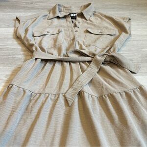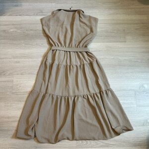 DKNY Women’s Tan Sleeveless Tiered Belted Maxi Cargo Dress - 6