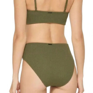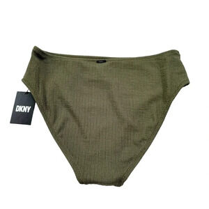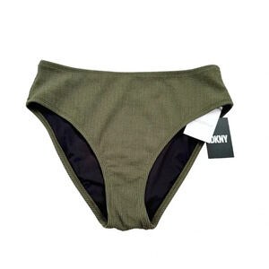 DKNY Women's Textured High Waist Bikini Bottom Swimsuit Moss Green Size L NWT