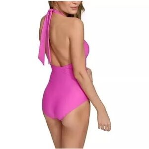New with Tags - DKNY Women's Tie Back Halter Style One Piece Swimsuit - Color: Carnation Pink Size: M - Chic one piece swimsuit.