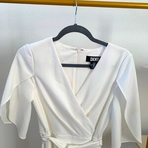 Add both style and elegance to your wardrobe with the DKNY® Tulip Sleeve Suplice Dress.