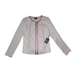 DKNY Women's Tweed Jacket with Pink Trim, Polyester, Size S. NWT.