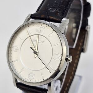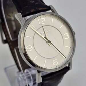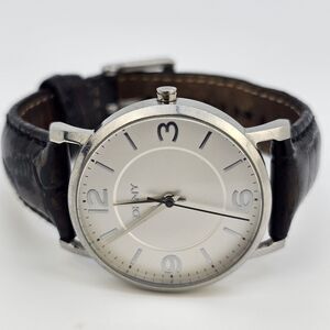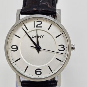 DKNY Women's Watch 36MM Gray Dial Black Leather Band Straps New Battery