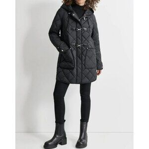 DKNY Women's Water Resistant Black Hooded Quilted Jacket Size XXL (MSRP $180)