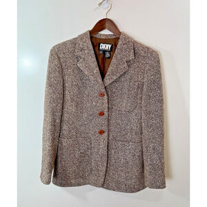 DKNY Women’s Wool Tweed Blazer Size M 8 Brown Timeless Office Preppy Old Money