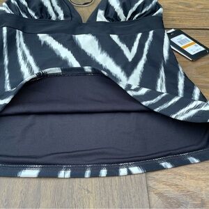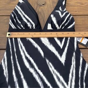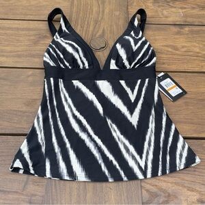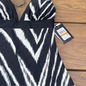 DKNY Women's Zebra-Print Plunge Tankini Top slimming tummy control granny core
