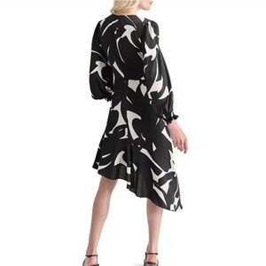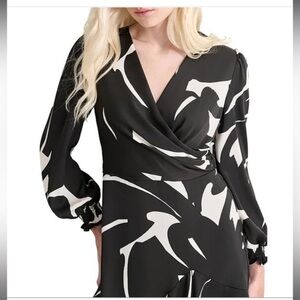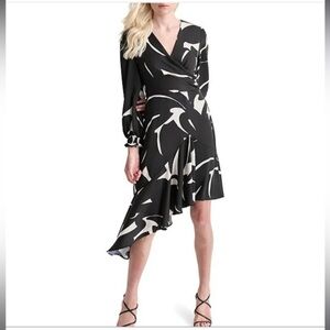 DKNY Women's black eggshell surplice wrap Geometric Asymmetric Dress size 12 new