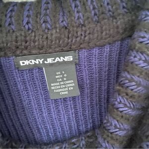 DKNY Women’s Cowl Neck Ribbed Knit Navy Blue and Black Sweater size L