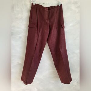 DKNY Wool Blend Burgundy Trousers Women High Waist