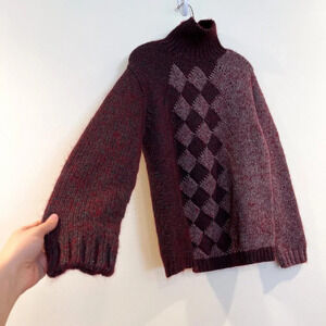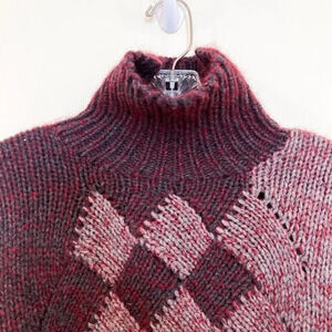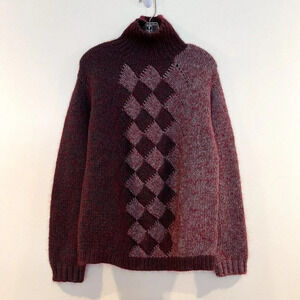 DKNY Wool Mohair Blend Maroon Checkered Knit Designer Turtleneck Sweater SAMPLE