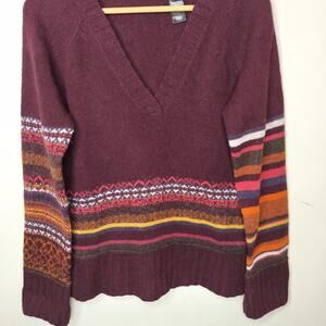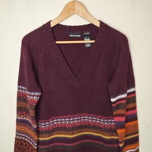 DKNY Wool Sweater Fair Isle Stripe Burgundy