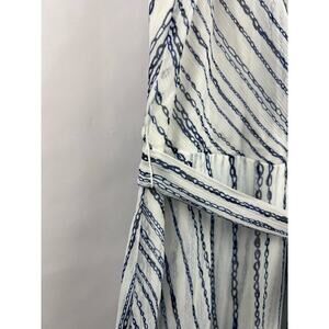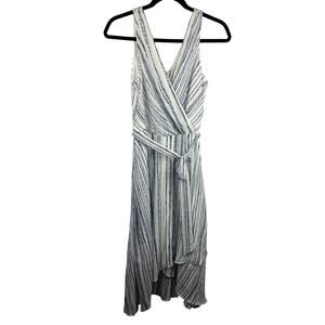 DKNY Wrap Dress, Blue White Chain Stripe, Sleeveless, Belted Asymmetrical Hem