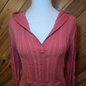 DKNY Y2K Long Sleeve Knit to Shape Sweater Hood Pink/Coral Small
